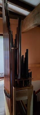 Kegellade 7 Register 54 Töne C-f3 mit Keilbälgchen, Stöcke Kiefer/Eiche,, Maße 2900mm x 900mm